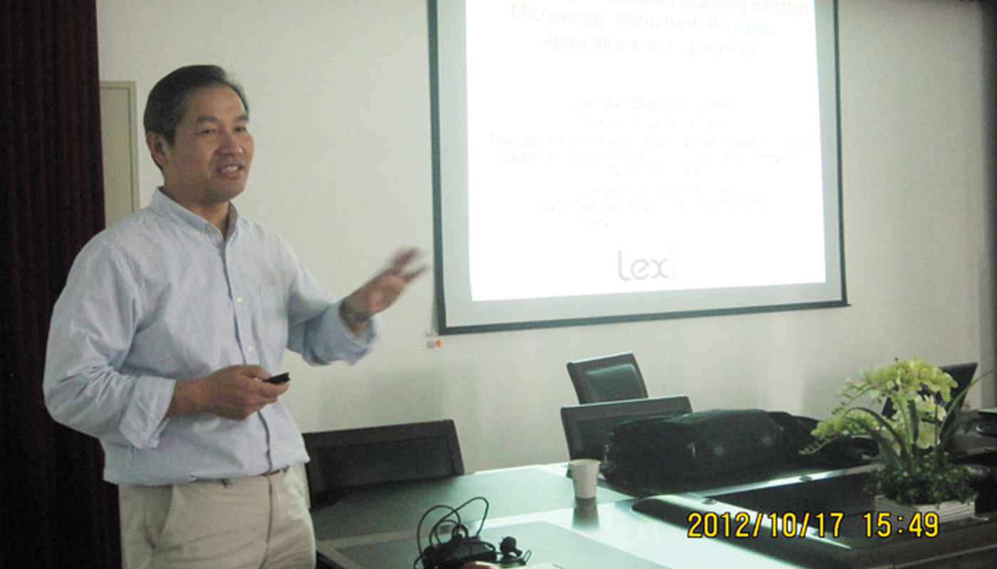 10月17日下午,美国加州大学尔湾分校博导郑建国教授应邀请来yl23411永利集团官网机械工程学院作题为“极高(亚纳米)分辩率扫描电镜的结构、原理及应用”的学术报告。