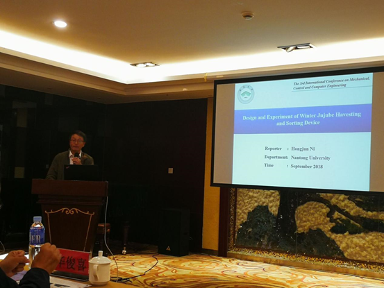 倪红军院长/教授作为特邀嘉宾出席大会并做专家报告“Design and Experiment of Winter Jujube Havesting andSorting Device”,分别从“装置功能、机械结构、控制系统、实验过程及结果”等方面详细介绍了冬枣采收分拣装置,获得与会专家的一致好评。