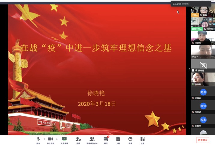 318日下午,机械工程学院学生党支部在线开展了“守初心、担使命、扛责任、抗疫情”线上主题党日活动。