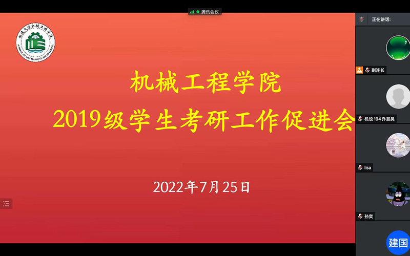7月25日上午,机械工程学院线上举办2019级学生考研促进会。yl23411永利集团官网副书记、副院长孙汉中,副院长张福豹出席活动。