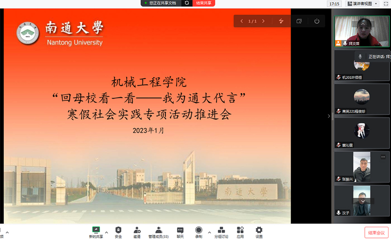 1月30日,机械工程学院召开“回母校看一看——我为通大代言”寒假社会实践专项活动推进会。