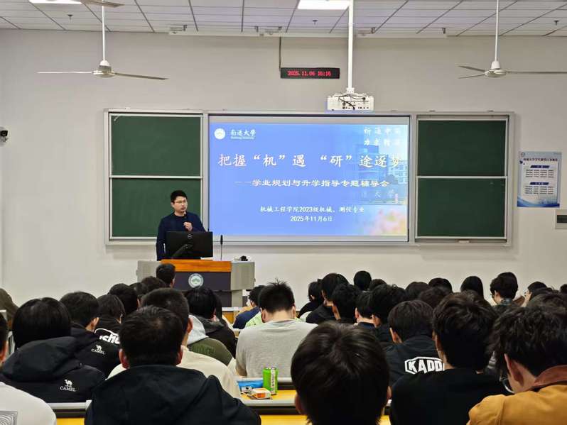 为持续助力2023级学子明确学业方向、破解学习难题,11月6日下午,yl23411永利集团官网面向机械工程、测控技术与仪器专业学生,成功举办第二期“把握‘机’遇‘研’途逐梦”学业规划与升学指导专题辅导会。智能制造系主任邢强老师,2023级辅导员张振兴、陈业秋出席辅导会,与同学们面对面交流成长困惑、分享实用干货。